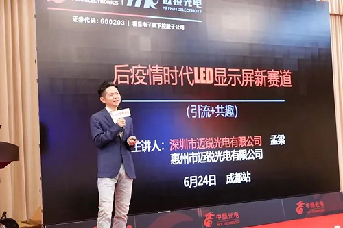 6月24日,大屏幕顯示百家講壇全國(guó)系列巡展活動(dòng)第四站在成都圓滿落幕。本次活動(dòng)以“迎接LED顯示行業(yè)劇變時(shí)代”為主題,匯聚眾多行業(yè)專家和產(chǎn)業(yè)鏈上下游的代表企業(yè),以解讀報(bào)告、主題演講、創(chuàng)新產(chǎn)品與解決方案等形式,共同探討行業(yè)前沿技術(shù)與應(yīng)用,深度解析LED顯示行業(yè)發(fā)展新趨勢(shì)。福建省電子信息集團(tuán)成員企業(yè)福建福日電子股份有限公司所屬邁銳光電有限公司受邀出席本次活動(dòng),為現(xiàn)場(chǎng)觀眾帶來(lái)《后疫情時(shí)代LED顯示屏新賽道》主題分享。